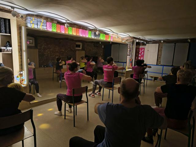 Trening Zdrowy kręgosłup z wykorzystaniem krzeseł i małych piłek fitnessowych, dzieje się!